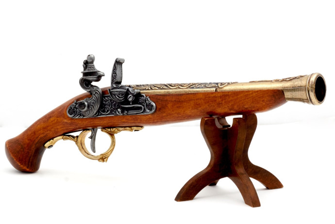 Replika niemiecki pistolet skałkowy na stojaku Denix model 1260L+801