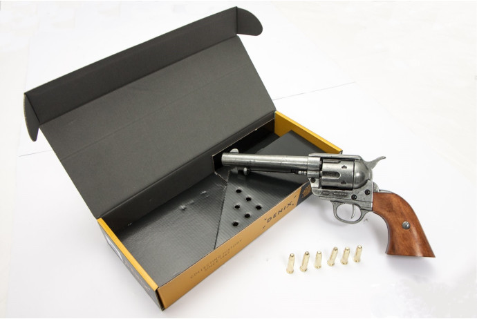 Replika rewolweru „Peacemaker” kaliber 45 z 1873 roku. Replika jest wykonana ze ZnAlu. Colt posiada obrotowy bęben z sześcioma komorami nabojowymi. Bęben można obrócić bezpośrednio - odciągając kurek do pozycji pół naciągniętej lub obracany jest automatycznie przez mechanizm podczas napinania kurka do pozycji pełnej. Możliwość oddania tzw. suchego strzału.