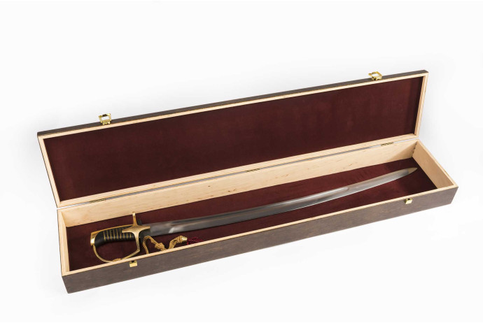 Na zdjęciu poglądowym szabla jest wygięta w dół w oryginale powinna być wygięta ku górze. Decyzję o sposobie zawieszania na ścianie (tablu) zostawiamy do Państwa decyzji.